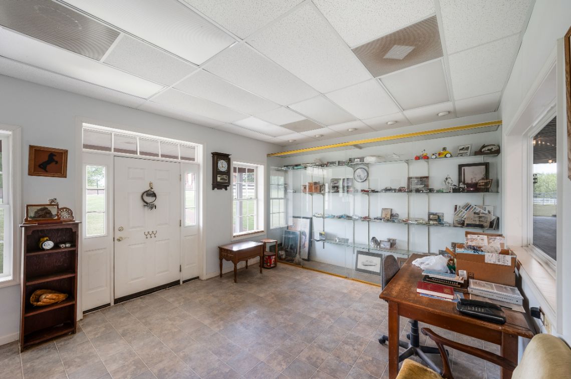 - Equestrian Facilities: Superior quality horse barn (64×104) featuring full HVAC, 4 stalls, wash bay, office, automatic waterers, full bathroom, tack room, and large floored attic storage area. Additional barn amenities include a sawdust bin, workshop, and equipment storage. The property also boasts a 120×240 outdoor riding arena with one end mirrored, paddocks, working pen, run-in shed, and heated waterers in the barn and paddocks. The equestrian facilities, designed with both horse and rider in mind, are truly exceptional.
